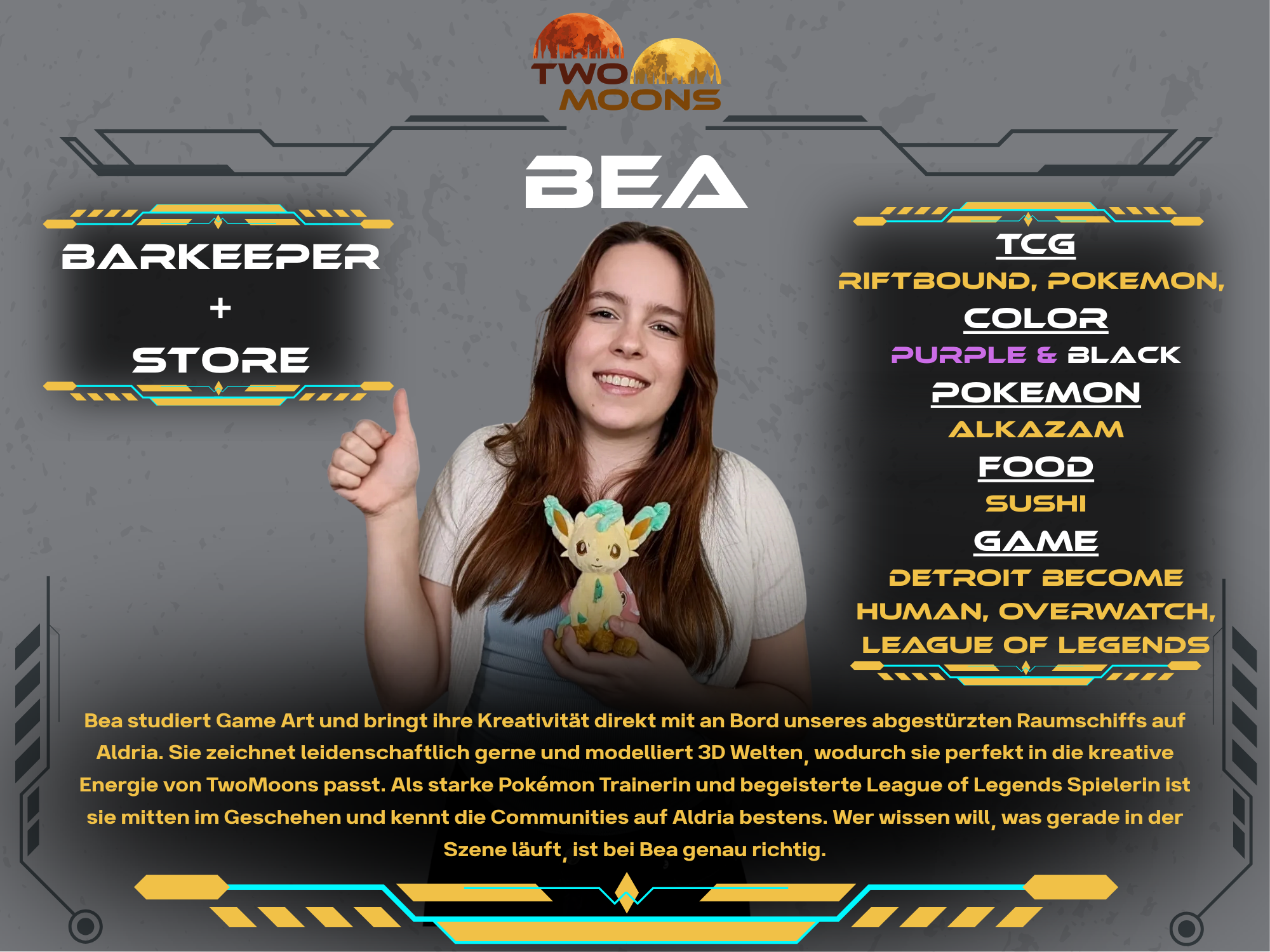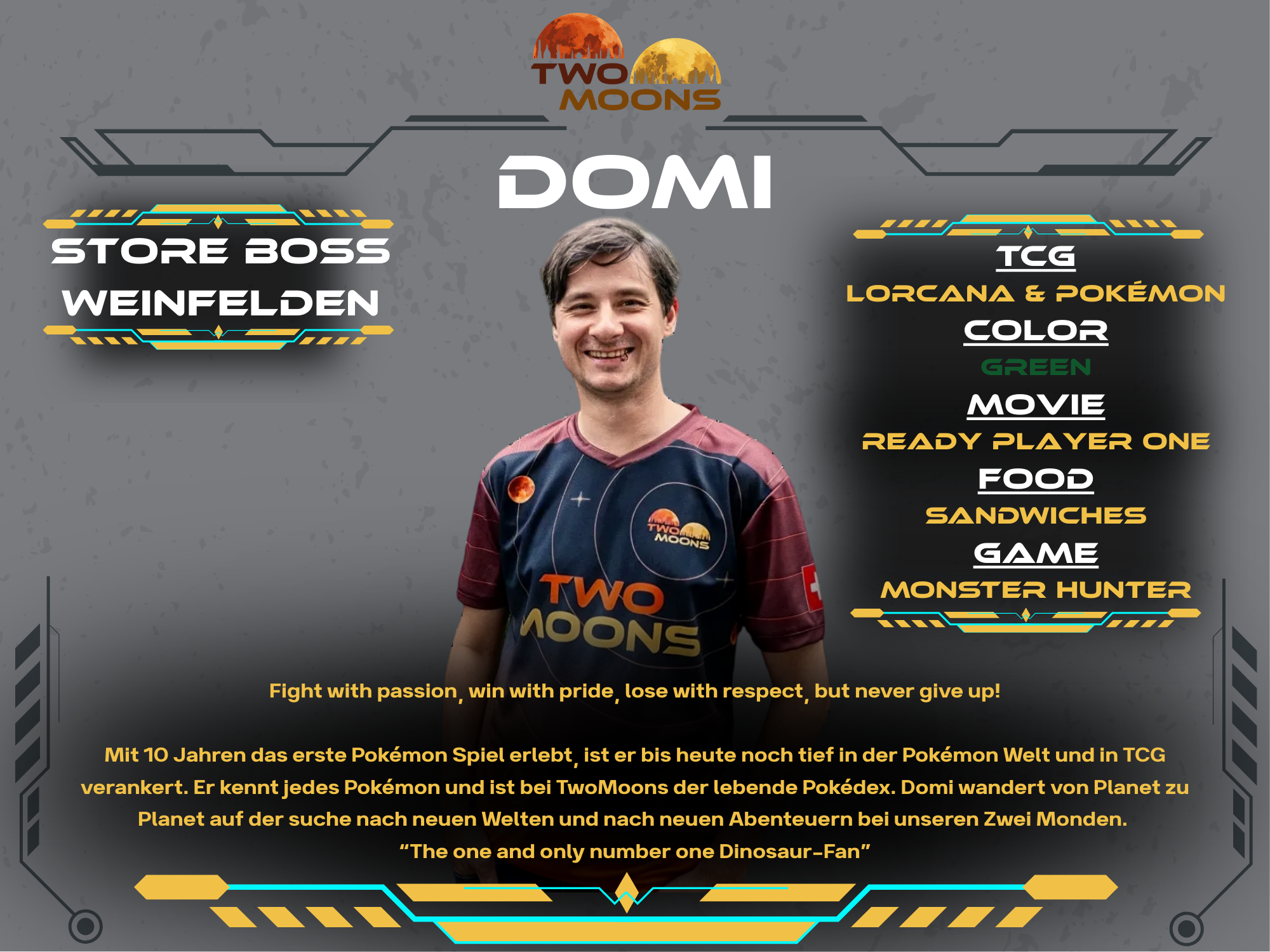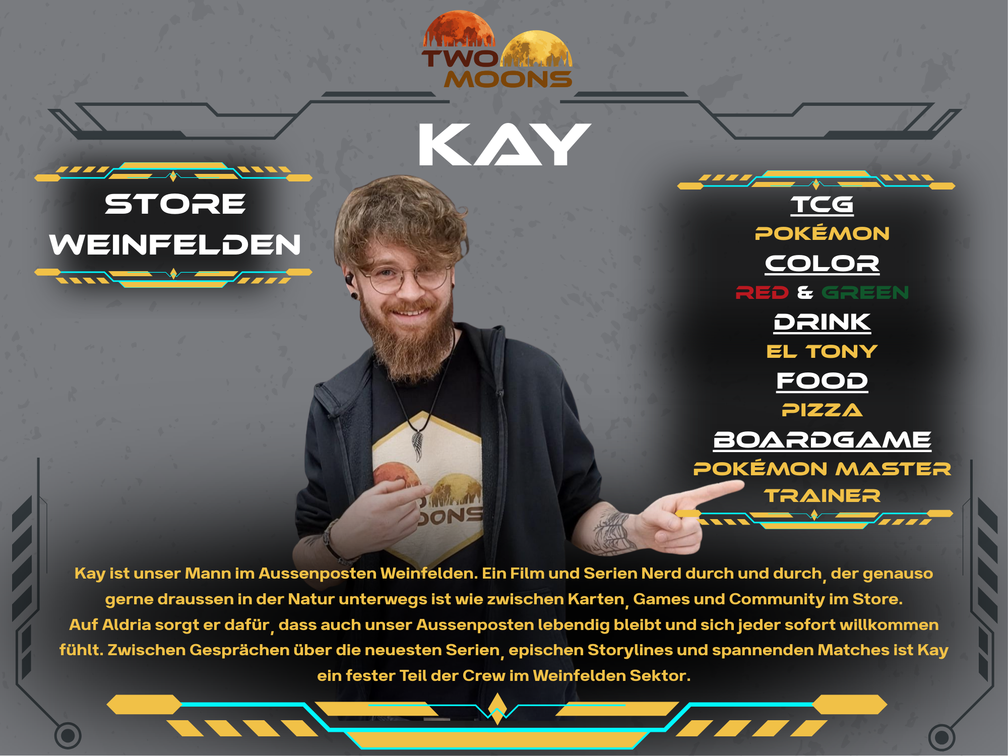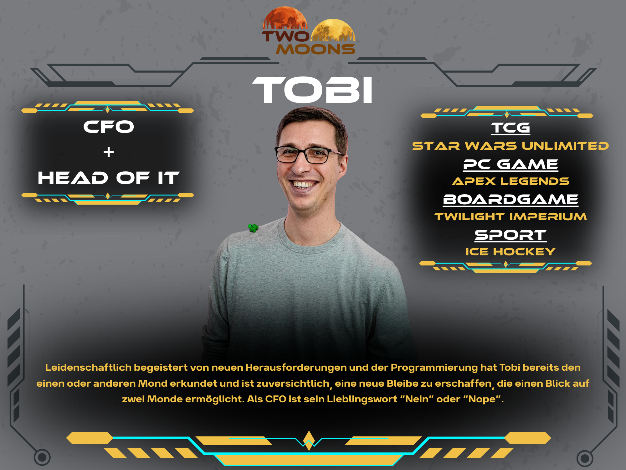 Andy has professionally explored numerous galaxies and is embarking on new adventures with TwoMoons. He supports and organizes the crew to bring the spaceship up to full power. With the rudder in one hand, his Magic The Gathering deck in the other, and a very capable crew around him, he navigates the spaceship through the galaxy. Always with the goal of establishing TwoMoons in the TCG universe.
